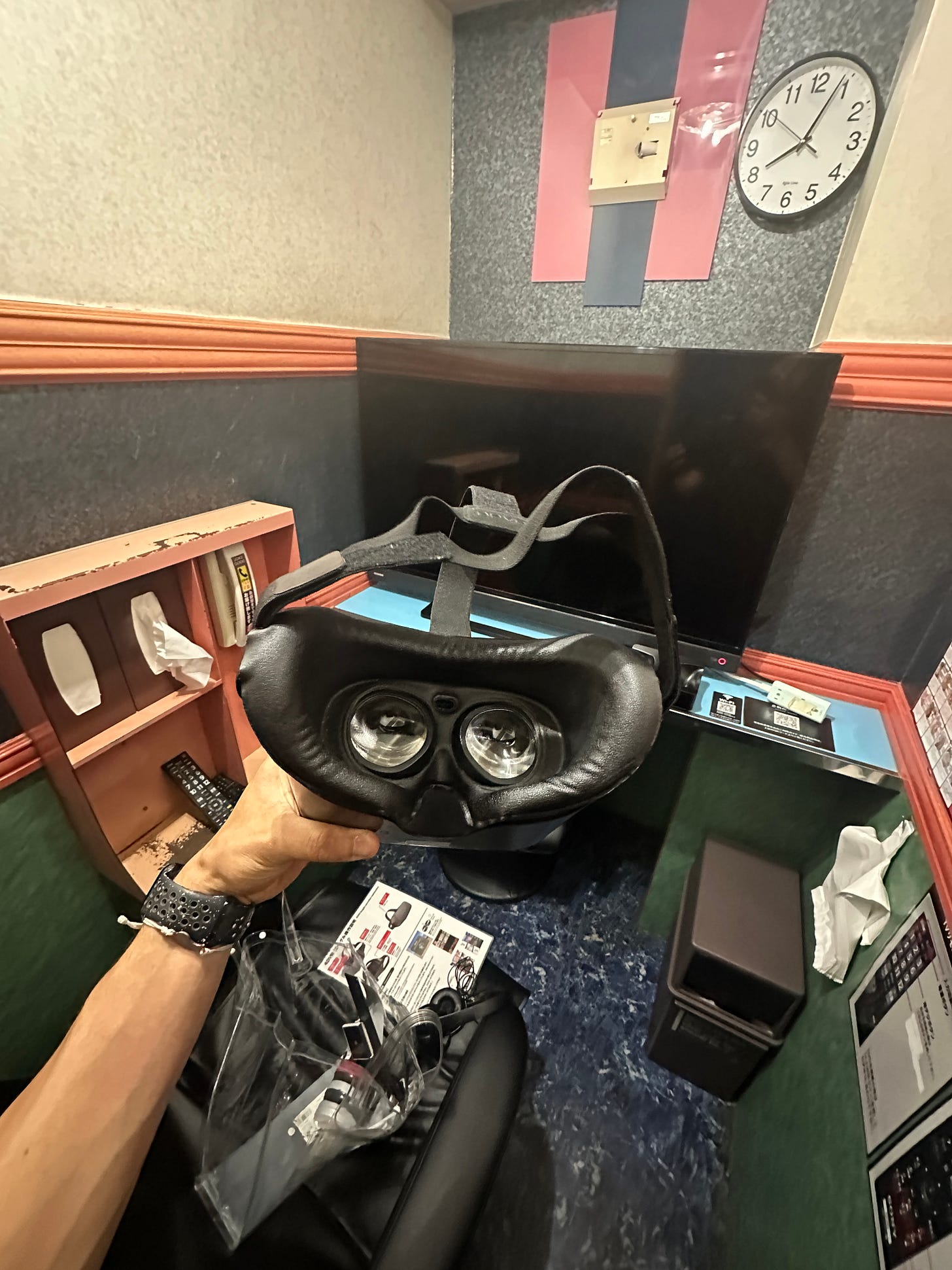 A leather chair and a huge TV. Tissues on my left, trash bin on my right. I set the alarm for 50 minutes. I don’t want to be charged overtime.